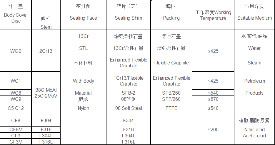 主要零件材料及性能