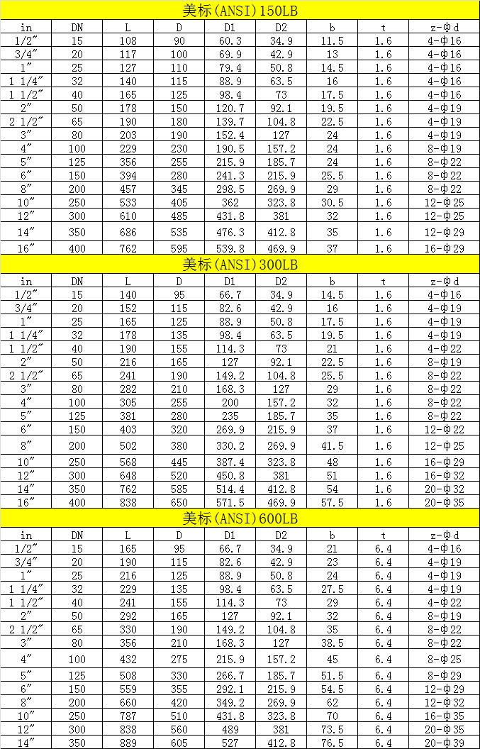 公稱(chēng)壓力:150,300,600LB